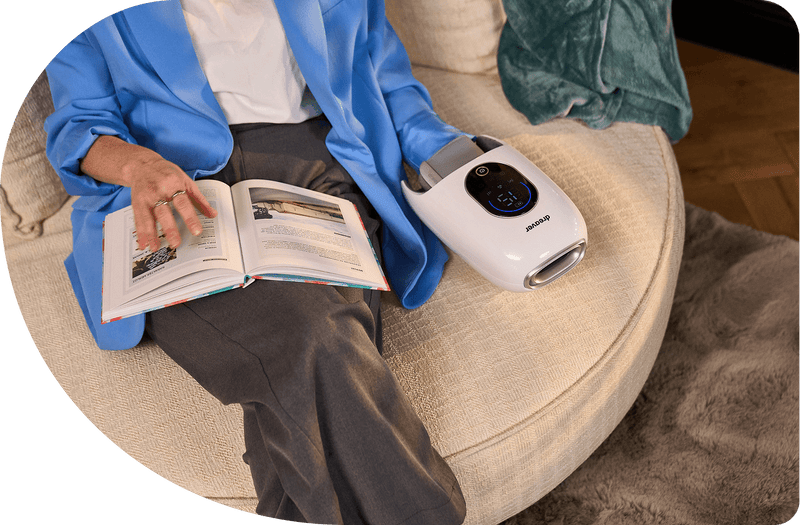 Herken je dat? Na 8 uur achter je laptop tintelen je vingers, voelen je polsen stijf, en lukt het amper om een pen vast te houden. Met 15 minuten warmte en massage per dag voorkom je dat RSI-klachten verergeren. Gewoon tussendoor, tijdens een meeting of 's avonds op de bank.
