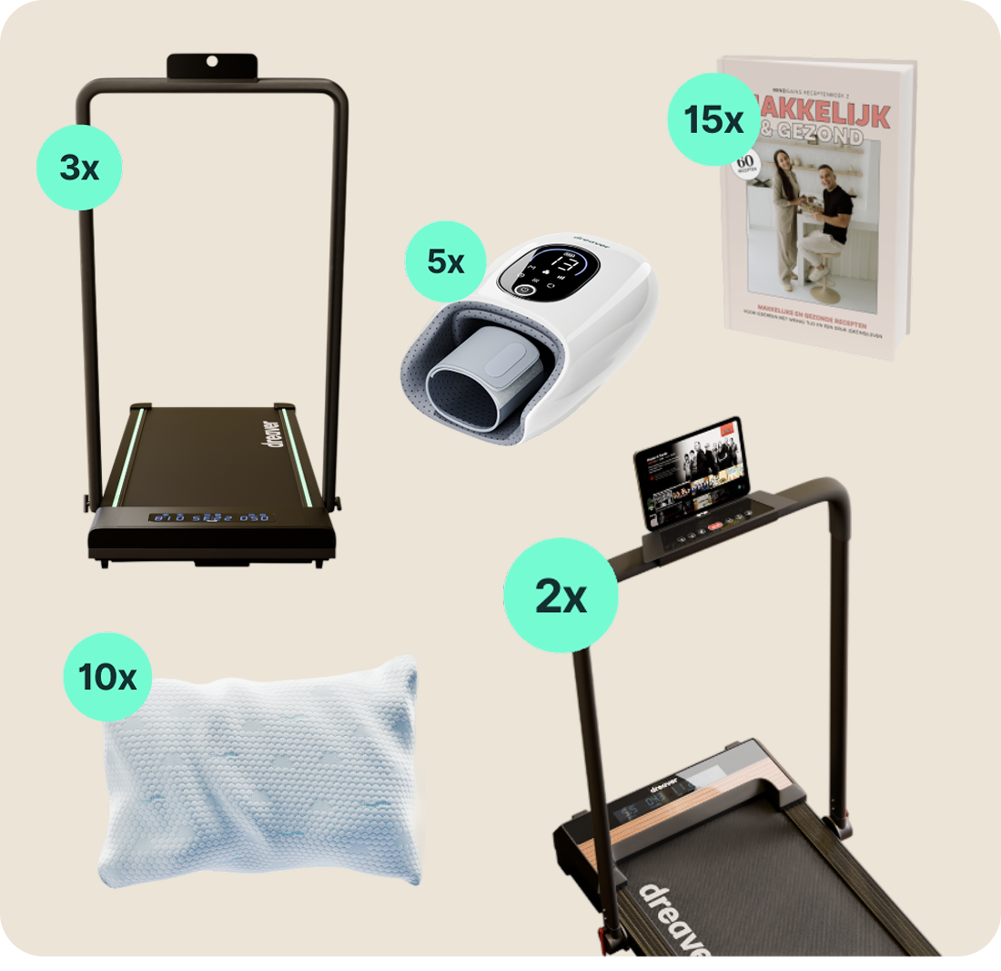 Zeker! Als jij de gelukkige eigenaar van een Dreaver bent, en daarnaast ook de gelukkige winnaar van een loopband tijdens de challenge, dan is aan jou de keuze of je liever kiest voor een volledige cashback of een nieuwe loopband!